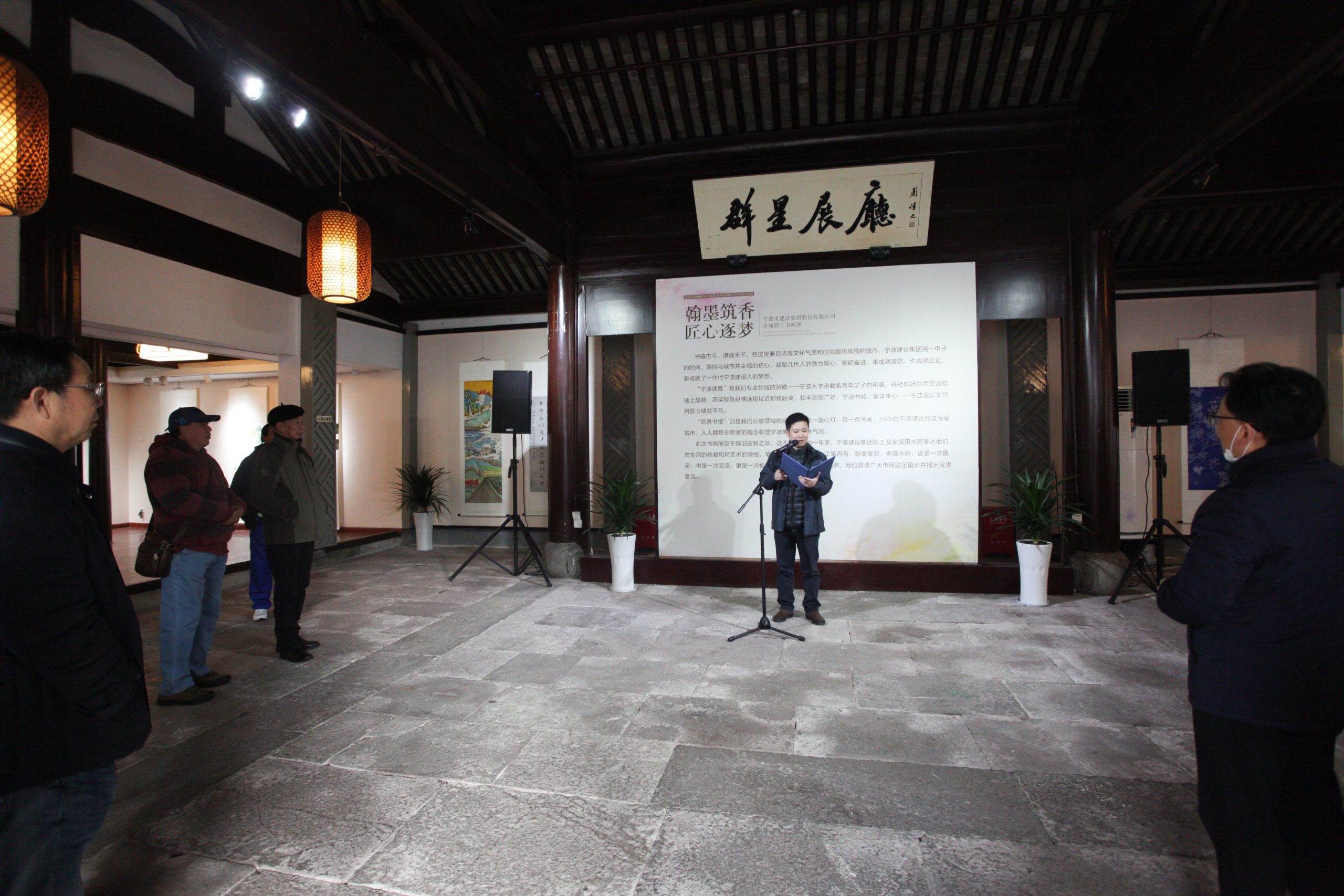 企劃部經(jīng)理杜寧在書畫展開幕式前做簡(jiǎn)短的致辭