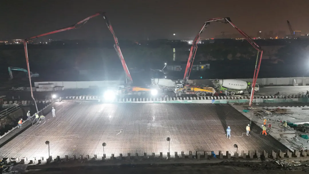 項(xiàng)目部實(shí)行春節(jié)不停工,24小時(shí)不間斷施工