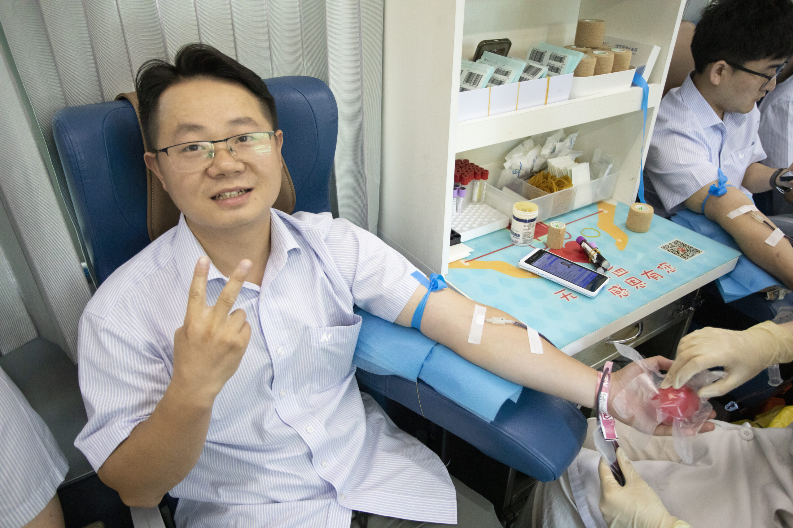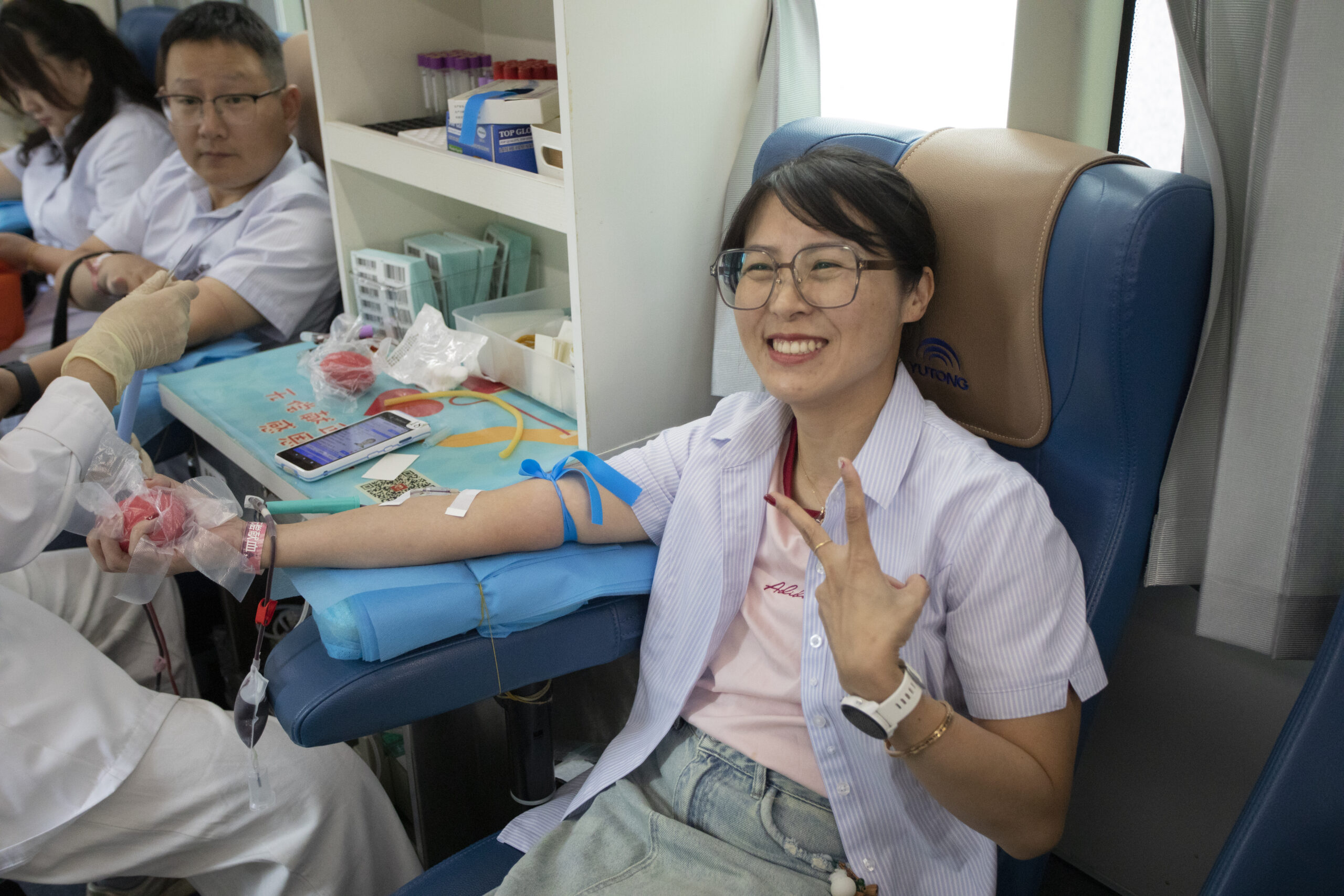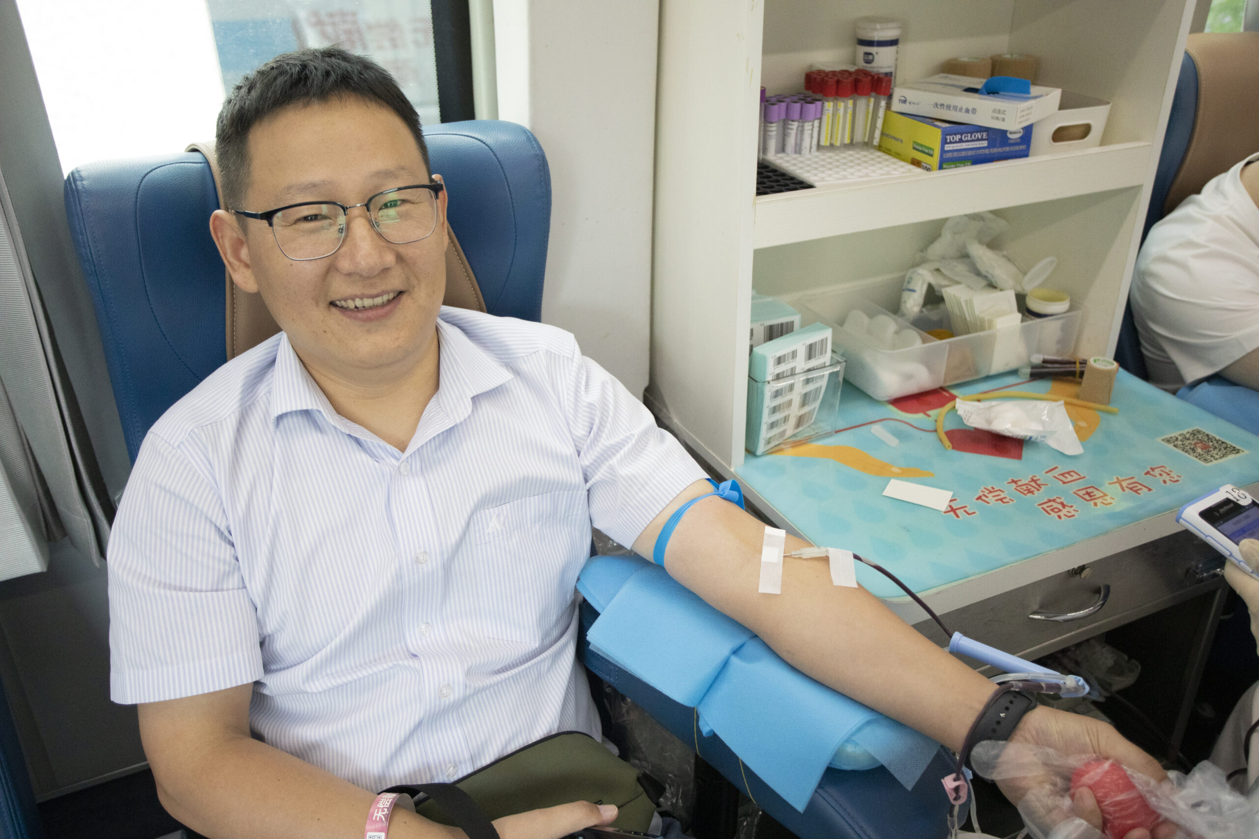 ? ? ? 血液達(dá)到符合規(guī)定標(biāo)準(zhǔn)的員工進(jìn)入采血車進(jìn)行獻(xiàn)血。他們中有每年都參與無償獻(xiàn)血的“老將”,也有初次上陣的“新兵”,醫(yī)護(hù)人員專業(yè)而耐心地為職工們服務(wù),確保每個(gè)環(huán)節(jié)安全可靠。