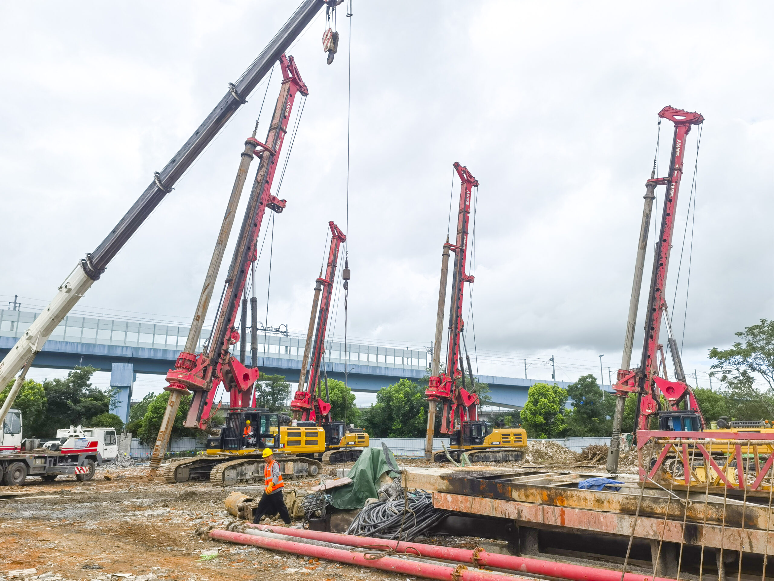 ? ? ? 為確保項(xiàng)目?jī)?yōu)質(zhì)高效推進(jìn),機(jī)施分公司組建了由資深技術(shù)骨干領(lǐng)銜的專業(yè)項(xiàng)目管理團(tuán)隊(duì),并制定科學(xué)合理的施工方案。施工過(guò)程中采用先進(jìn)的旋挖機(jī)施工技術(shù),該設(shè)備作為多功能、高效率的灌注樁成孔裝備,兼具桅桿垂直自動(dòng)調(diào)節(jié)與鉆孔深度精準(zhǔn)計(jì)量功能,通過(guò)鉆斗旋轉(zhuǎn)鉆進(jìn)、提升卸渣的循環(huán)作業(yè)模式,有效保障施工效率與工程質(zhì)量。針對(duì)巖石層施工難點(diǎn),分公司運(yùn)用成熟的加壓鉆進(jìn)工藝,依托設(shè)備的高扭矩性能驅(qū)動(dòng)鉆頭合金齒切入巖層實(shí)施破碎,此項(xiàng)技術(shù)方案集中呈現(xiàn)了分公司在復(fù)雜地質(zhì)條件下積累的施工經(jīng)驗(yàn)。