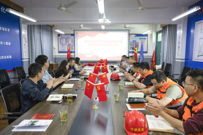 ? ? ? ? 3月25日下午,寧波市海曙區(qū)秀水歷史文化街區(qū)綜合改造工程臨時(shí)黨支部預(yù)備成立會(huì)議在項(xiàng)目部會(huì)議室隆…